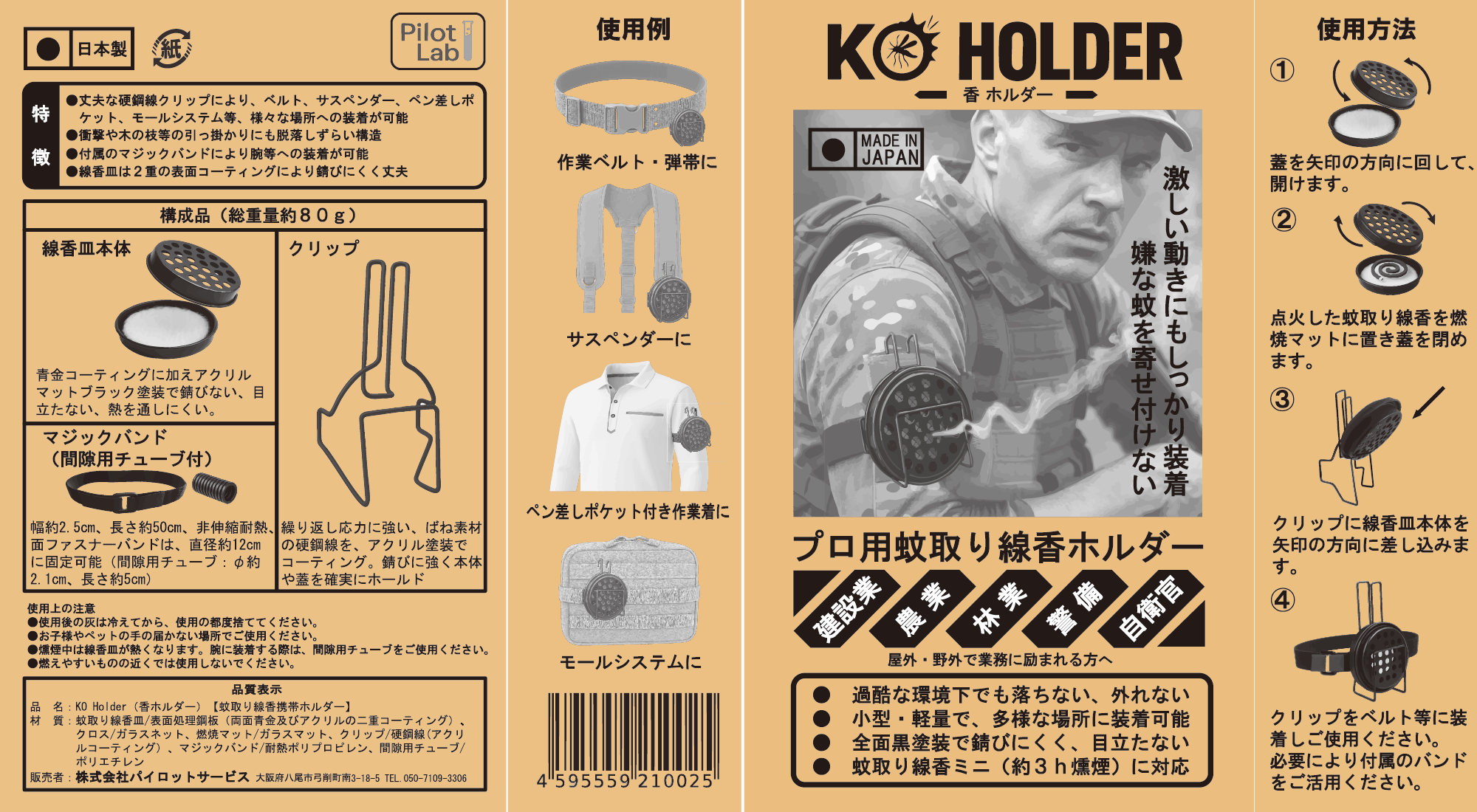 主力製品のプロ用蚊取り線香ホルダー「KO HOLDER」はプロの現場で高い評価を受けています。